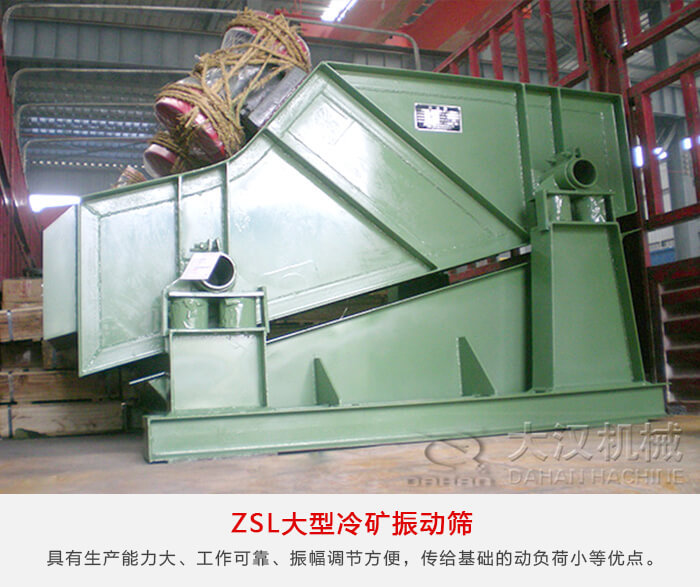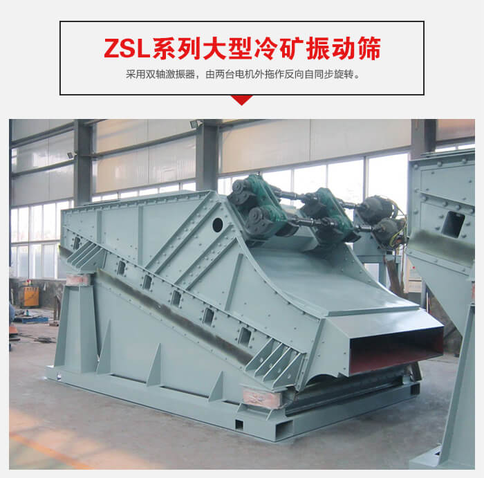 ZSL系列大型采用雙軸激振器,電機(jī)不參振,由兩臺(tái)電機(jī)外拖作反向自同步旋轉(zhuǎn),使篩箱產(chǎn)生較大振幅沿直線(xiàn)方向作周期性往復(fù)運(yùn)動(dòng),從而達(dá)到篩分目的的一種振動(dòng)篩設(shè)備。這種振動(dòng)篩具有生產(chǎn)能力大、工作可靠、振幅調(diào)節(jié)方便、傳給基礎(chǔ)的動(dòng)負(fù)荷小等優(yōu)點(diǎn)。